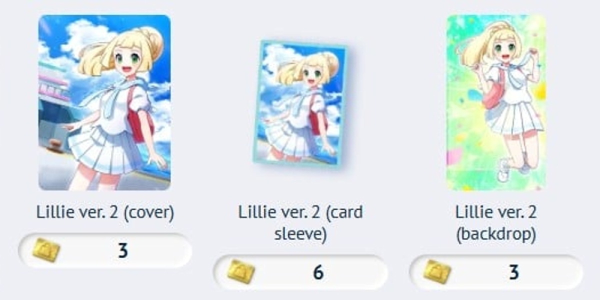 • Lillie Card Sleeve: Costs 6 premium tickets. These sleeves are used to protect cards and are selectable during deck setup.